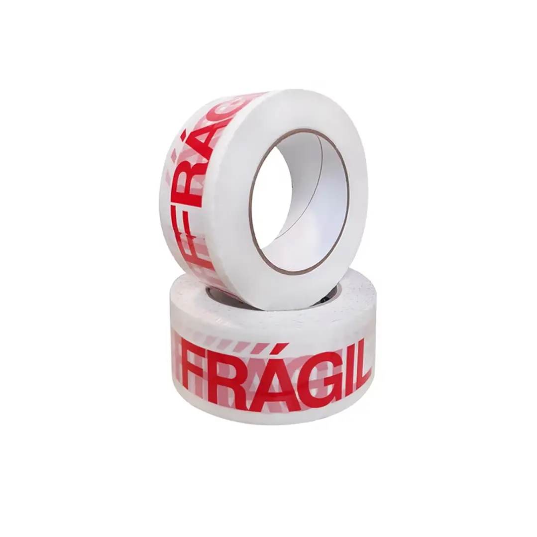 La cinta de frágil en rollo es una cinta adhesiva especialmente diseñada para el embalaje y señalización de paquetes que contienen productos delicados. Está fabricada en polipropileno o PVC de alta resistencia, con adhesivo de excelente adherencia que permite un sellado firme y seguro en cajas de cartón, sobres y otros tipos de embalaje.
